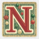 Holiday Letter N: Red and Green with Gold Square Sticker