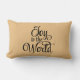 This holiday throw pillow is shown with a Joy to The World print.