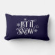 This holiday throw pillow is shown with a let it snow snowflakes print.