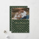 Elegant green and gold buffalo plaid photo Merry Christmas card featuring a gold hand-lettered holiday greeting, stars and falling snow on a buffalo plaid background. Easily personalise this green and gold photo holiday card with your photo, the family name and the the year. The gold foil effect is only simulated in the artwork.