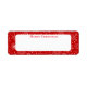 A festive Christmas holiday red and white snowflakes print is shown on this return address label.