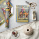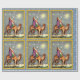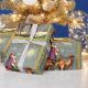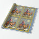 Beautiful pattern of stars on a blue background, with blocks depicting Joseph and Mary on Christmas Eve night. Beautiful wrapping paper makes your gifts unique. By Scarebaby Design.
