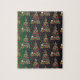 Holiday matte green gold Christmas tree pattern Jigsaw Puzzle