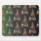 Holiday matte green gold Christmas tree pattern Mouse Pad
