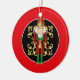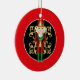 This holiday tree ornament is shown with a festive Christmas nutcracker print.