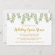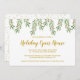 This Holiday Open House Invitation features watercolor mistletoe and gold text with gold polka dots on the back of the invite.