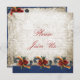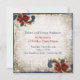 Elegant Holiday Open House Invitation on Floral Sepia Background with traditional Norwegian Telemark Rosemaling Scroll Accent in tones of gold. green and red on blue. Customise this unique and classy invitation by typing in your own personalised details on the back.