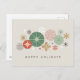 A collection of various holiday-themed ornaments and star shapes arranged in a loose circular composition. The soft and muted colours of green, red, gold, and beige give the design a nostalgic and elegant appearance. The shapes resemble snowflakes, stars, and festive balls, adding to the holiday charm.