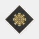 These standard style luncheon napkins are anything but standard. Shown with a single, bold golden snowflake on a black background, a thin gold border with white outer border edges.
