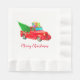 Holiday paper napkins standard coined luncheon size shown in White with a festive Christmas red truck and tree print.