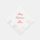 Holiday paper napkin shown in white with red holiday message of Merry Christmas.