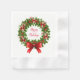 Holiday paper napkins standard coined cocktail size shown in White with a festive Christmas candy cane wreath print.