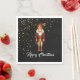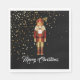 Holiday paper napkin shown in white with a festive Christmas nutcracker print on a black colour background.