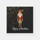 Holiday paper napkin shown in white with a festive Christmas nutcracker print on a black colour background.