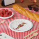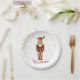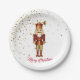 Holiday paper plate is shown in white with a festive Christmas nutcracker print.