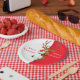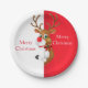 Shown on this paper plate is a festive Christmas holiday Rudolph print.