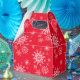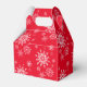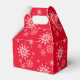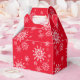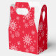 This holiday party favour box is shown in a festive Christmas holiday red and white snowflakes print.