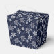 Party favour box is shown with a Holiday snowflakes print in a midnight blue colour.