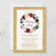 Holiday Party Watercolor Floral Gold Glitter Invitation