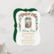 Elegant Watercolor Winter Floral Mason Jar Holiday Party Invitation includes watercolor red poinsettias, white roses, pines cones, holly berries, cotton and botanical greenery foliage. Mason Jar collage includes watercolor deer family in a woodland pine tree forest. Green Back.