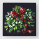 Holiday Pastel Drawing Mistletoe Ribbon Square Wall Clock
