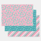 Our Patterned Christmas Wrapping Paper - Festive Stripes in Trendy Pink and Teal. Get into the holiday spirit with our festive, trendy wrapping paper! This Winter Holiday Modern Gift Wrapping Paper set includes three matching sheets of paper in unique and eye-catching designs. Each sheet captures the joy of the season with design patterns of cosy gloves, hat, scarf, and socks. The 'falala' adorning the paper provides a whimsical touch, making each of your gifts a piece of art even before they're opened. The chic pink and teal colour palette brings a fresh twist to traditional holiday colours, ideal for those seeking a modern take on the Christmas spirit. Whether it's for the big day or an early white elephant party, this wrapping paper will make your presents sparkle under the Christmas tree.