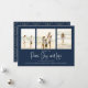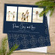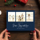 Classic and Simple yet elegant navy blue snowflake pattern, this design is completely editable. With calligraphy script. This festive, elegant, and unique multi-photo Christmas photo card template is a 1 photo layout. Celebrate with this unique holiday and festive Christmas card. This design features a Christmas holiday navy blue pattern, navy blue silver snowflakes, winter holiday elegant simple minimalist, fancy calligraphy script font, peace joy love quote saying, whimsical modern typography,1 photo family picture template, holiday Christmas photo greeting card, minimal simple pattern style, a three 3 photo grid layout