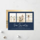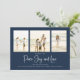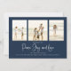 Classic and Simple yet elegant navy blue snowflake pattern, this design is completely editable. With calligraphy script. This festive, elegant, and unique multi-photo Christmas photo card template is a 1 photo layout. Celebrate with this unique holiday and festive Christmas card. This design features a Christmas holiday navy blue pattern, navy blue silver snowflakes, winter holiday elegant simple minimalist, fancy calligraphy script font, peace joy love quote saying, whimsical modern typography,1 photo family picture template, holiday Christmas photo greeting card, minimal simple pattern style, a four 4 photo grid layout