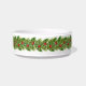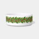 This medium size pet bowl is shown with a festive holiday print of garland in fir and holly with red berries.