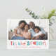 A super fun card design featuring the quote "TIS THE SEASON" in colourful type and cute cross hatch pattern on the backside. Maximum area to display your beautiful family too!