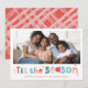 A super fun card design featuring the quote "TIS THE SEASON" in colourful type and cute cross hatch pattern on the backside. Maximum area to display your beautiful family too!