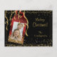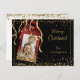 What a chic, but fun Christmas postcard. The photo is in a gift tag with curly gold ribbon hanging down. The glitter accents and completes the postcard for a festive holiday look. Black background with “Merry Christmas” photo Christmas postcard for all your family and friends.
