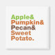 Apple & Pumpkin & Pecan & Sweet Potato.