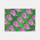 Holiday Pig in Santa Hat Pattern on Green Fleece Blanket