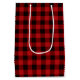 Holiday party humour - eat drink merry - red and black plaid with pine-cone accent