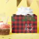 Holiday party humour - eat drink merry - red and black plaid with pine-cone accent