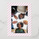 Send holiday greetings with this minimalist pink and white stripes gift wrap inspired, photo greeting card. The "Merry Christmas" or custom holiday greeting text is in real foil. The option to change the foil from silver to rose gold or gold is available. The back of the card is the full striped design that is on the front frame.