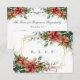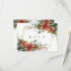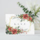 Pretty red poinsettias and green eucalyptus enhance this RSVP / response card. The front also has a faux gold frame for a stunning look. The back of the card carries the same floral design at the top with elegant script and fonts completing the look. Easily add your response due date, and you're done; or go even further and add more particulars if you desire as this card can be completely customised.