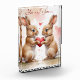 A sweet watercolor card featuring two charming bunnies holding a heart. A wonderful gift for your loved one on Valentine’s Day or any special occasion.
