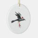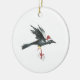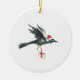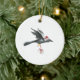 Ceramic Christmas ornament with an illustration of a silly raven carrying a present. Perfect for bird lovers!