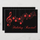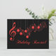 Elegant christmas ball ornaments covered in red lace with red bows and silver trimming on a black background grace this unique holiday recital invitation with a moving musical staff covered in red lace. The beautiful vintage lace motif of interlacing stars and flowers on the Christmas ornaments is reminiscent of the ancient craft of lace-making. We specialise in custom-made designs, contact us if you would like a unique christmas concert program made-to-order layout using this lovely musical design.