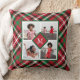 Holiday Red Plaid Photo Collage and Monogram Cushion