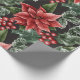 Holiday Red Poinsettias Pine Greenery Xmas Wrapping Paper
