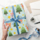 Holiday Reindeer Christmas Tree and Stars Seamless Wrapping Paper