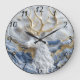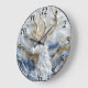 A whimsical deer with golden antlers stands elegantly against a backdrop of swirling blue and white marbling, adorned with hints of shimmering gold.