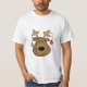 A reindeer with ball ornaments hanging from his antlers on holiday T-shirts, mugs, cards, stickers, holiday tote bags, sweatshirts, and other holiday clothing and gifts.