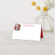 This folded name place card is shown in basic white with a festive holiday Christmas Santa print.