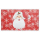 Pillowcase is shown in red with a festive holiday Christmas Santa and snowflakes print.
