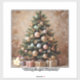 A vibrant Christmas design featuring a decorated christmas tree, colourful ornaments, and gifts, set against a golden floral textured background. Perfect for capturing festive cheer and holiday elegance. "Original Image was generated by Meta AI. AI generated artwork. Licensed under CC BY-SA 4.0."
