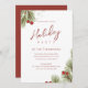 This design features a Christmas holiday calligraphy script invitation with greenery foliage winter holly berries artwork design, a botanical pine branch leaves leaf, a classic red and green design, with a simple minimalist style, a creative stylish typography text font, an elegant simplistic elegance contemporary invitation great for Christmas holiday get together, a family friends corporate business event, an elegant classic traditional holiday